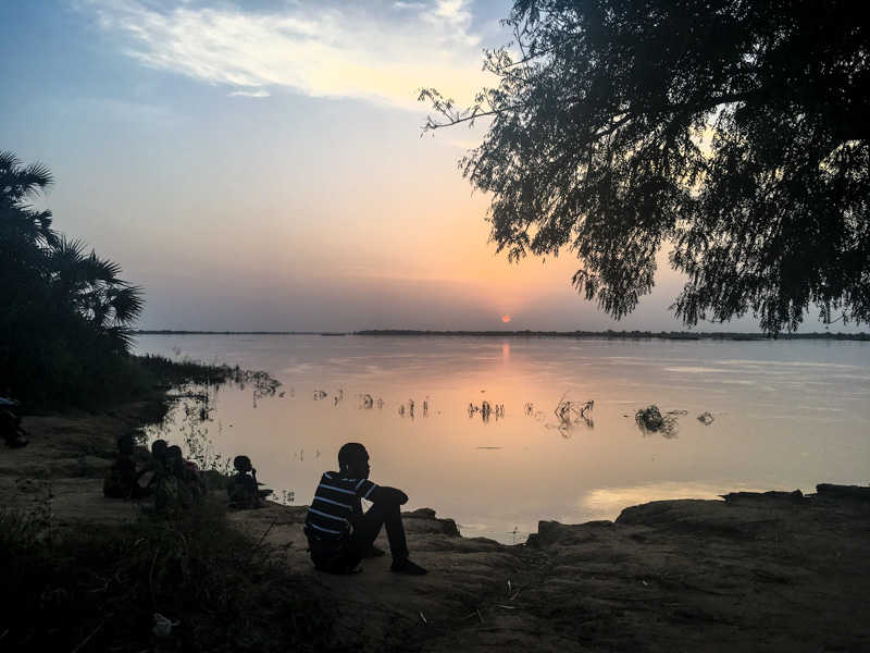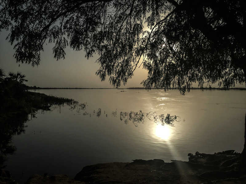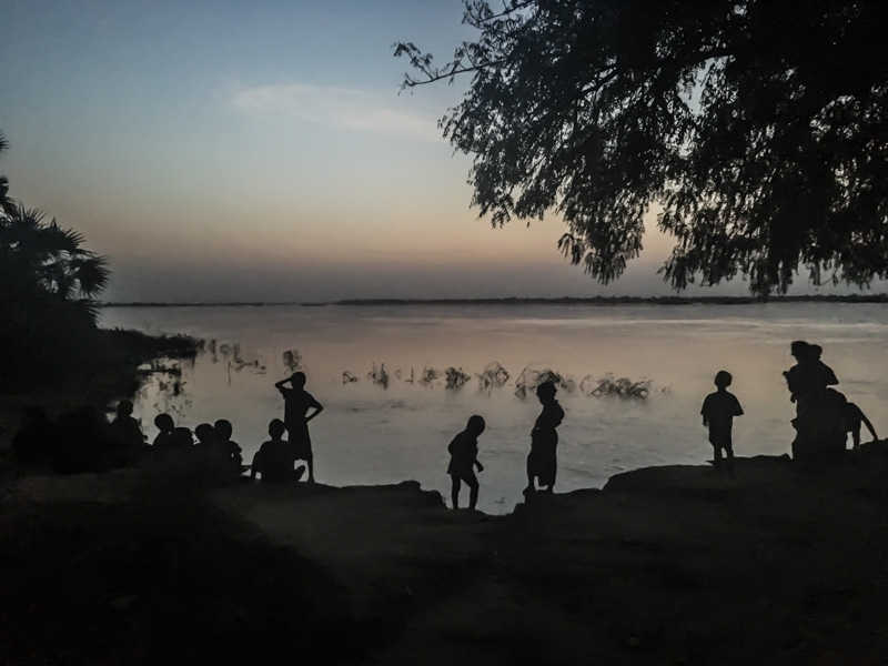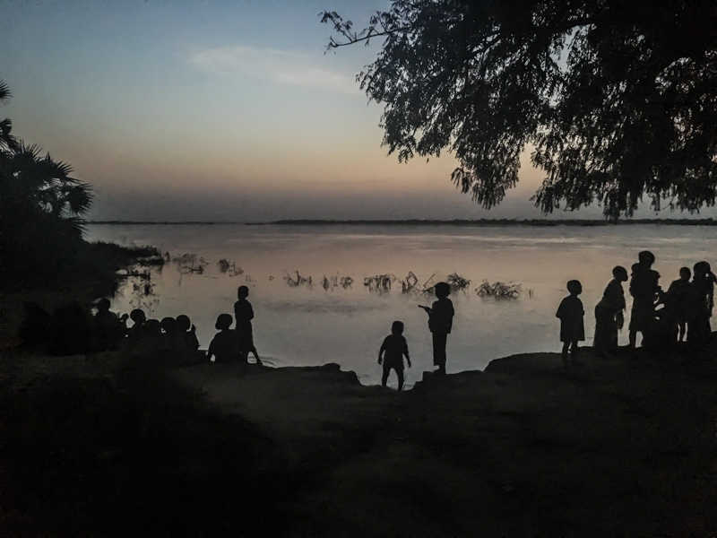 Po 5 minutach względnej ciszy i spokoju, kiedy tylko pojawiłem się na brzegu, zjawiła się chmara dzieci nie wiadomo skąd … ktoś nabrał brudnej wody z rzeki żeby się napić, a to jakieś dziecko przyniosło zielone gujawy, a to wspomniany sędzia wyrwał sobie krzaczek z orzeszkami ziemnymi i dreptając wokół samochodu chrupie brutalnie orzeszki swoimi przetlałymi zębami.